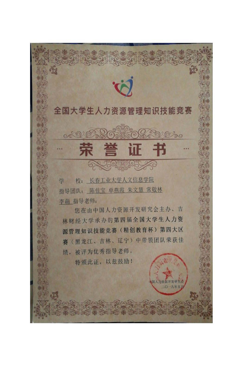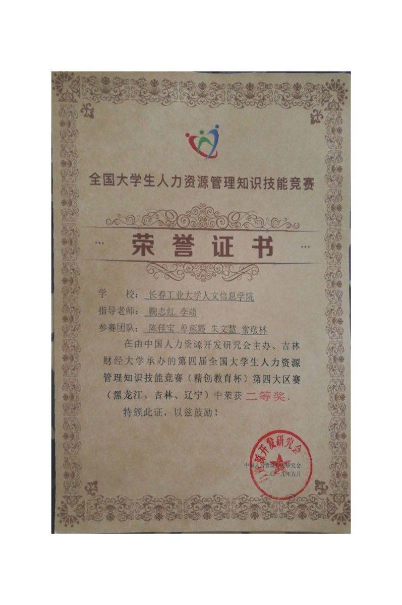 5月25日-26日,在吉林财经大学举办的第四届全国大学生人力资源管理知识竞赛(精创教育杯)第四大区赛中,我院工商管理系鞠志红、李萌老师指导的四名同学经过两天激烈角逐,荣获二等奖的优异成绩。
