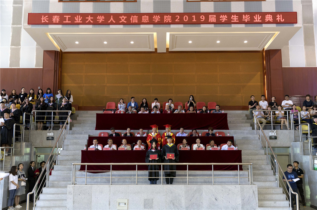 张兆华董事长、雷庆院长为毕业生代表授予学位并颁发毕业证书和学士学位证书。