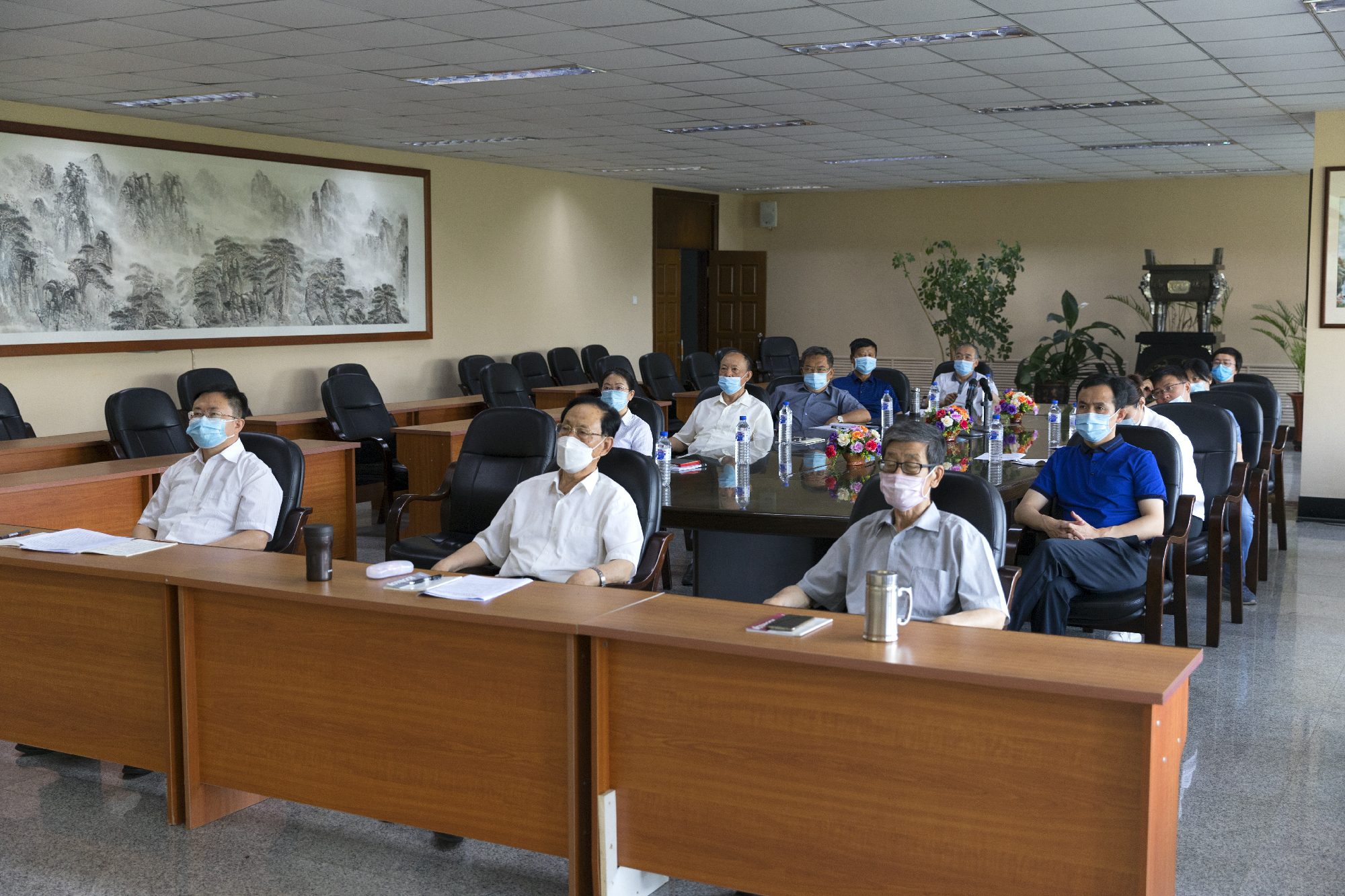 与会同志集体观看学习了由对外经济贸易大学校长、教授、博士生导师夏文斌教授所做的题为“坚定不移做好新时代意识形态工作”的辅导报告,报告从当前意识形态安全面临的新形势、警惕四种社会思潮所带来的风险、加强我国意识形态安全的对策等内容介绍了我国当前意识形态安全面临的新形势、新挑战以及加强意识形态安全的对策。