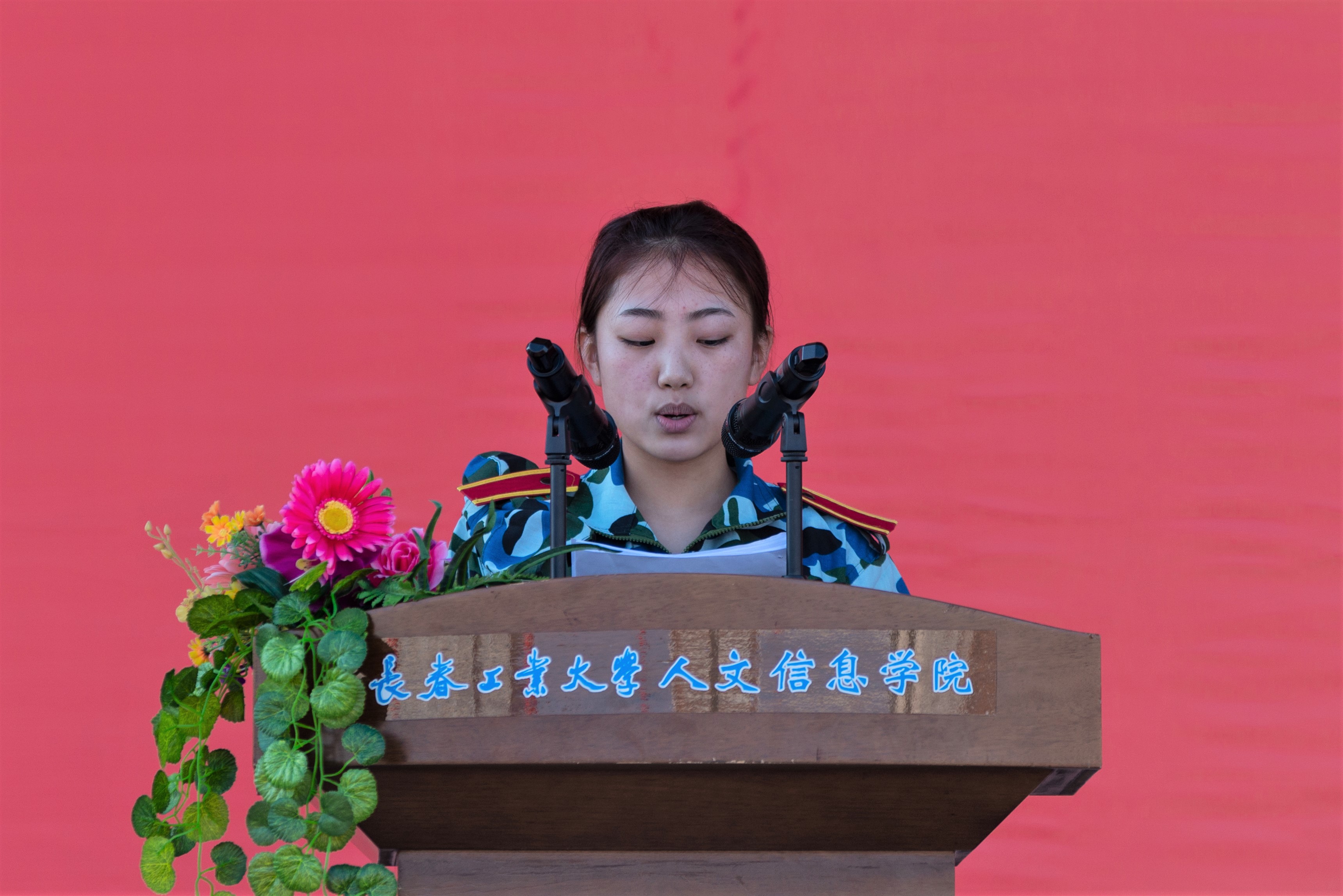 外国语学院郝爱童同学代表2020级新生发言,她用王国维先生的人生三境界分享了入学感悟,决心要志存高远、脚踏实地,不畏艰险,勇担使命,用青春成就自己的人生!