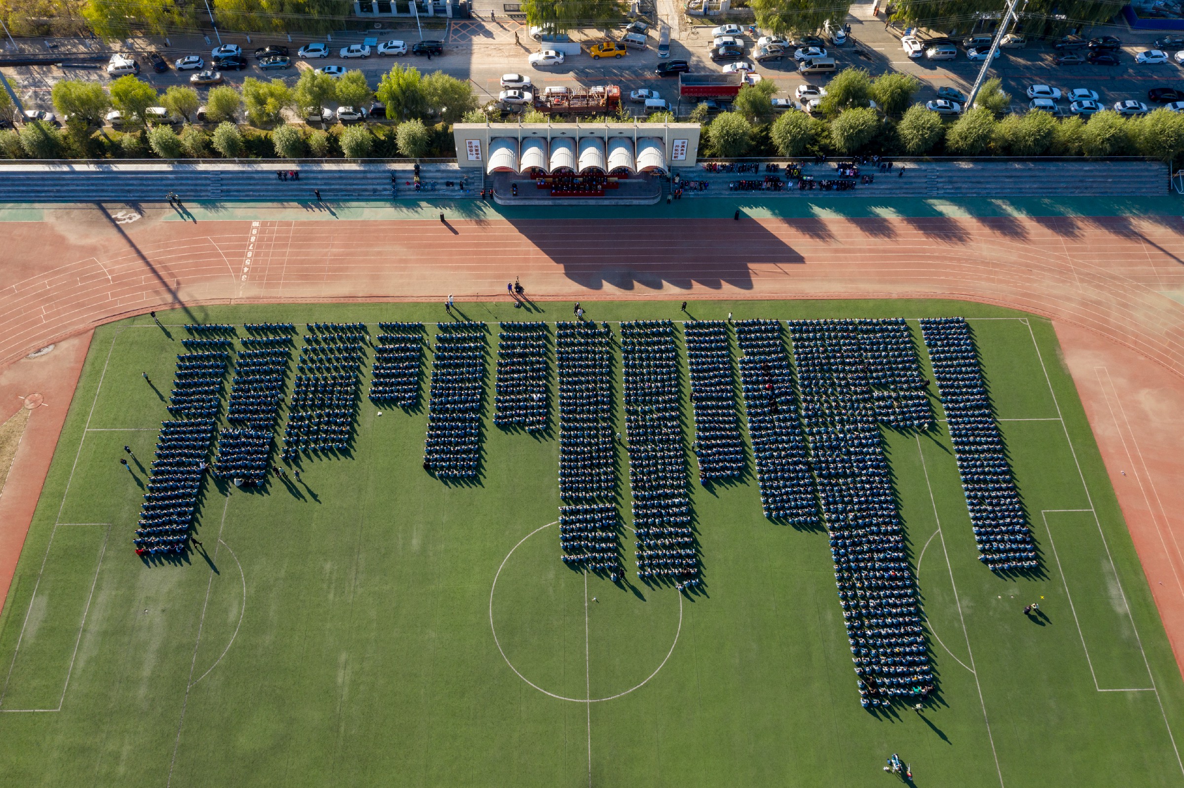 开学典礼在师生合唱《我和我的祖国》歌声中圆满结束。