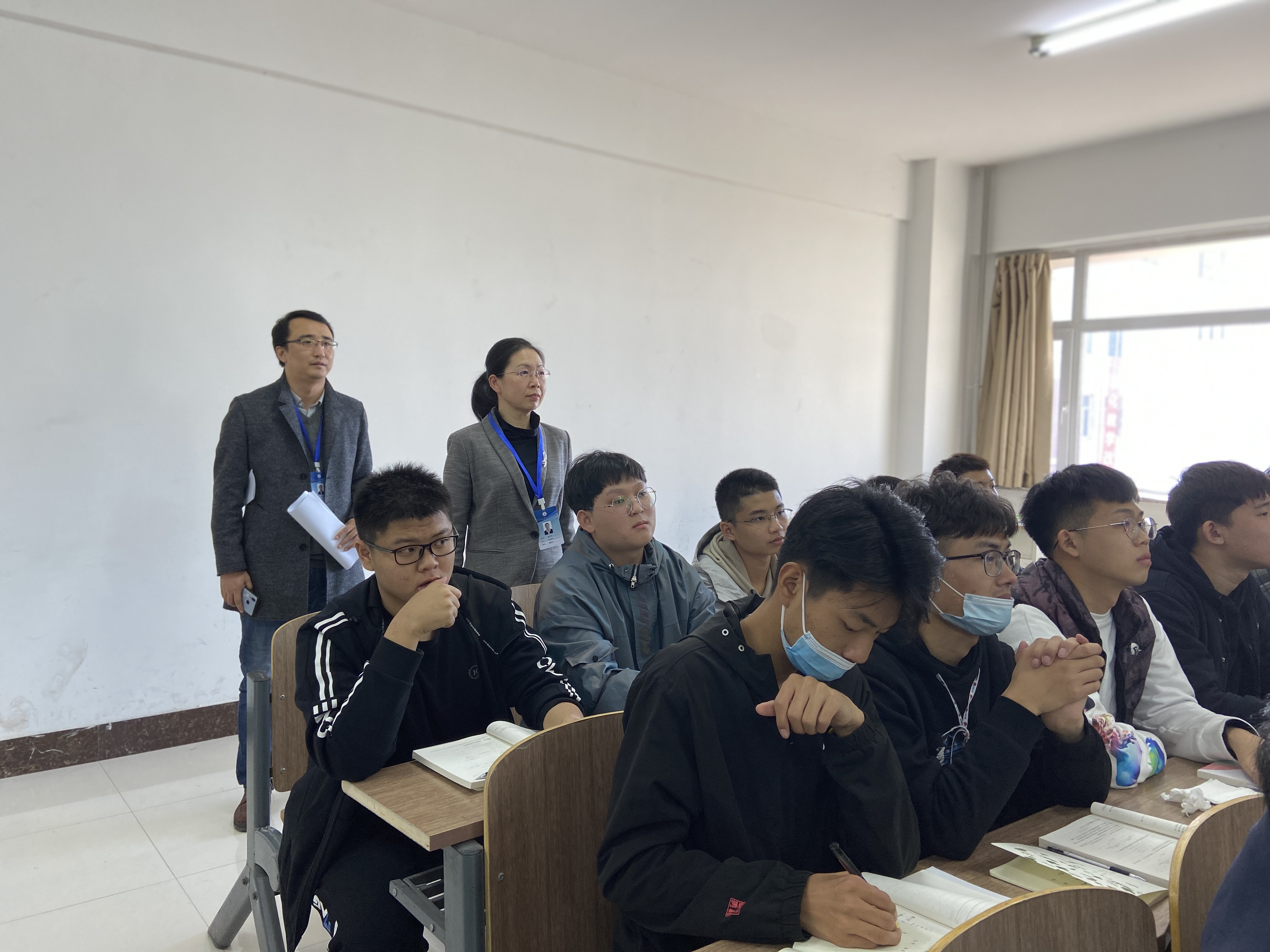 10月16日,2020级新生结束了五天的入学教育,迎来了大学的第一堂课,副校长、教务处处长臧玉萍,教学质量监控中心主任闫如恩带领教务处工作人员前往各教学楼、教室进行教学工作督查,了解新生第一天上课情况。