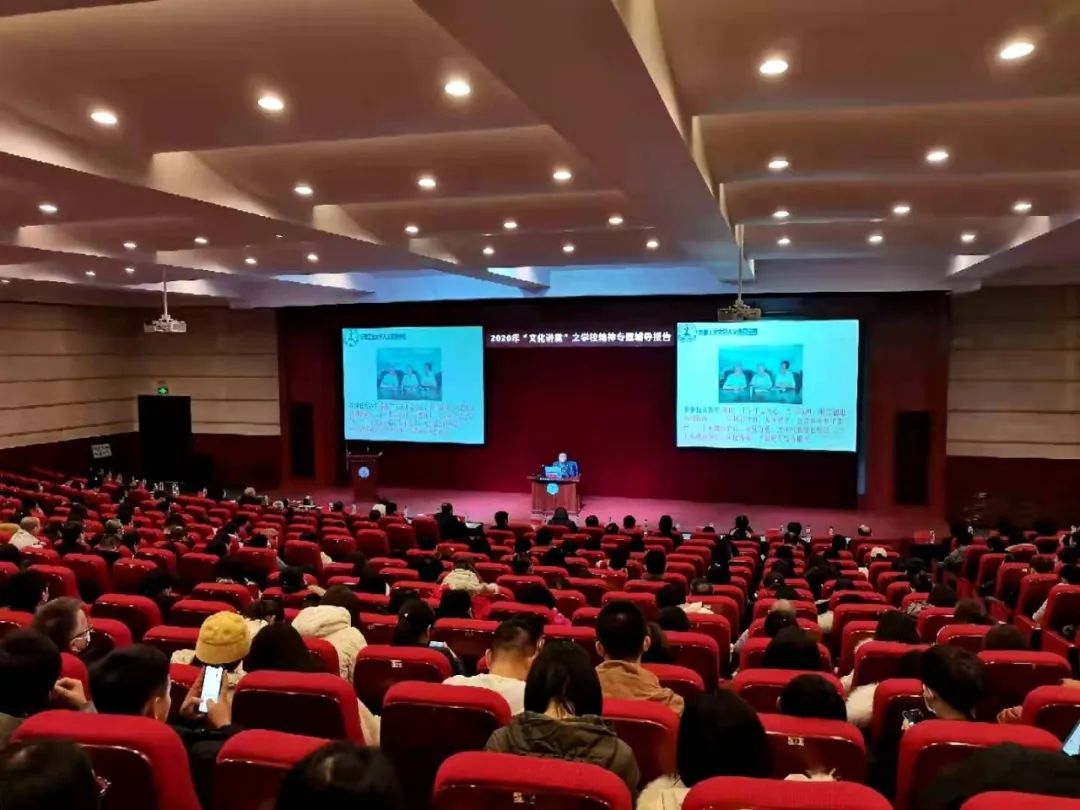 2020年11月25日下午,学校2020年“文化讲堂”之学校精神文化专题辅导报告在学术报告厅举行。报告由马克思主义学院院长范军教授主讲,学校党委副书记、学生工作处处长周丹主持。学校领导、各部门负责人和全校教职员工参加了报告会。