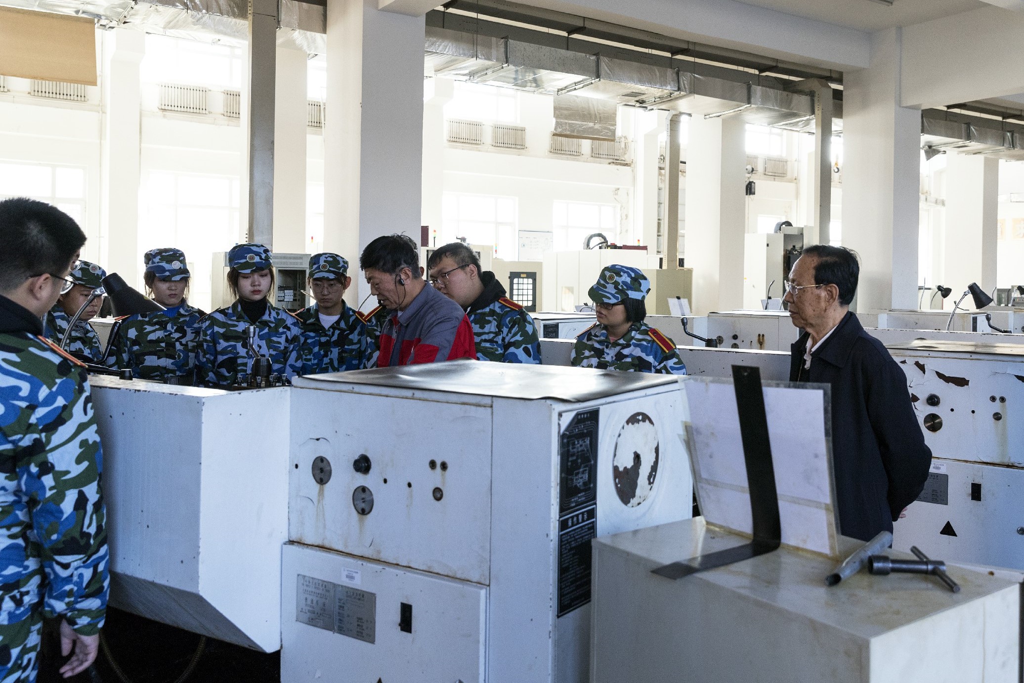11月9日上午,董事长张兆华教授在校长助理兼学校办公室主任李晓科的陪同下来到了工程训练中心视察工作,先后来到了车削、铣削、磨削、焊接实训区等区域,认真听取了工程训练中心主任毛志阳的汇报,了解学生工程实训和劳动实践情况。张兆华董事长对工程训练中心的工作给予充分肯定,强调要不断提升学生专业技能,做好学生劳动教育,并要求一定要做好学生实训安全工作。