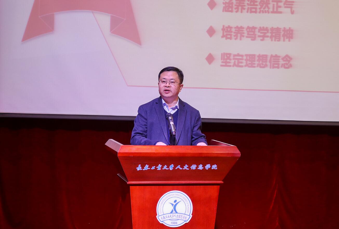 马克思主义学院院长范军教授分别以《了解校史校情,汲取成长力量》和《深悟学校文化内涵 凝聚发展精神力量》为题,从了解我校文化建设的发展历程、体会我校发展的精神文化内涵,凝聚高质量发展和学生成长成才的精神力量三个方面,为我们全校师生深刻的阐述了学校精神文化,尤其对如何弘扬学校精神,推动学校高质量发展和学生成为“两强”人才凝聚精神动力有很好的思考并提出了具有很强针对性和可操作性的工作建议。