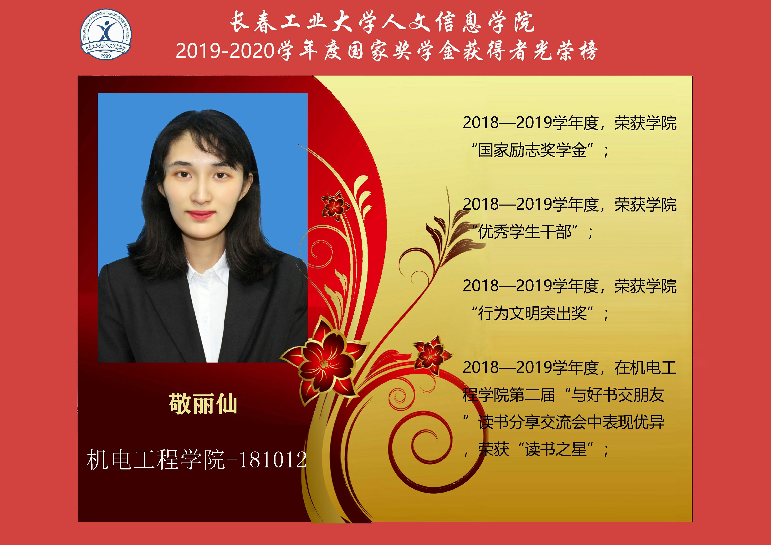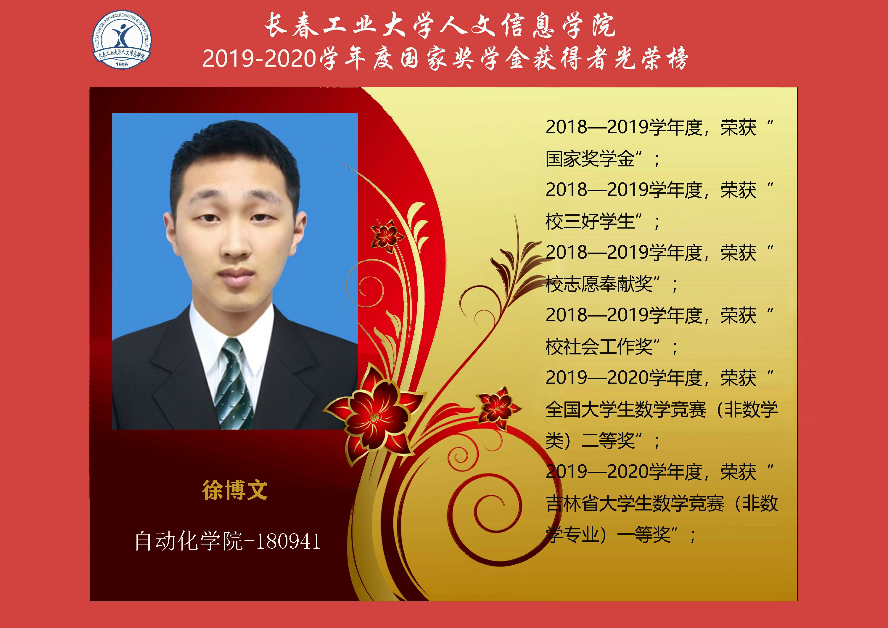 经班级评议小组评议,各学院奖、助学金评审小组汇总申报,学生工作处审核,学校奖、助学金评审委员会审议,奖学金专项会议批准,上报吉林省教育厅获批,我校共有16名同学获得2019-2020学年度国家奖学金。在他们身上,体现了当代青年勇于担当、奉献国家的爱国情怀,求真务实、知行合一的严谨作风,自强不息、奋斗不止的意志品格,彰显了我校青年学生对中国特色社会主义的坚定信念、对实现中华民族伟大复兴中国梦的必胜信心。