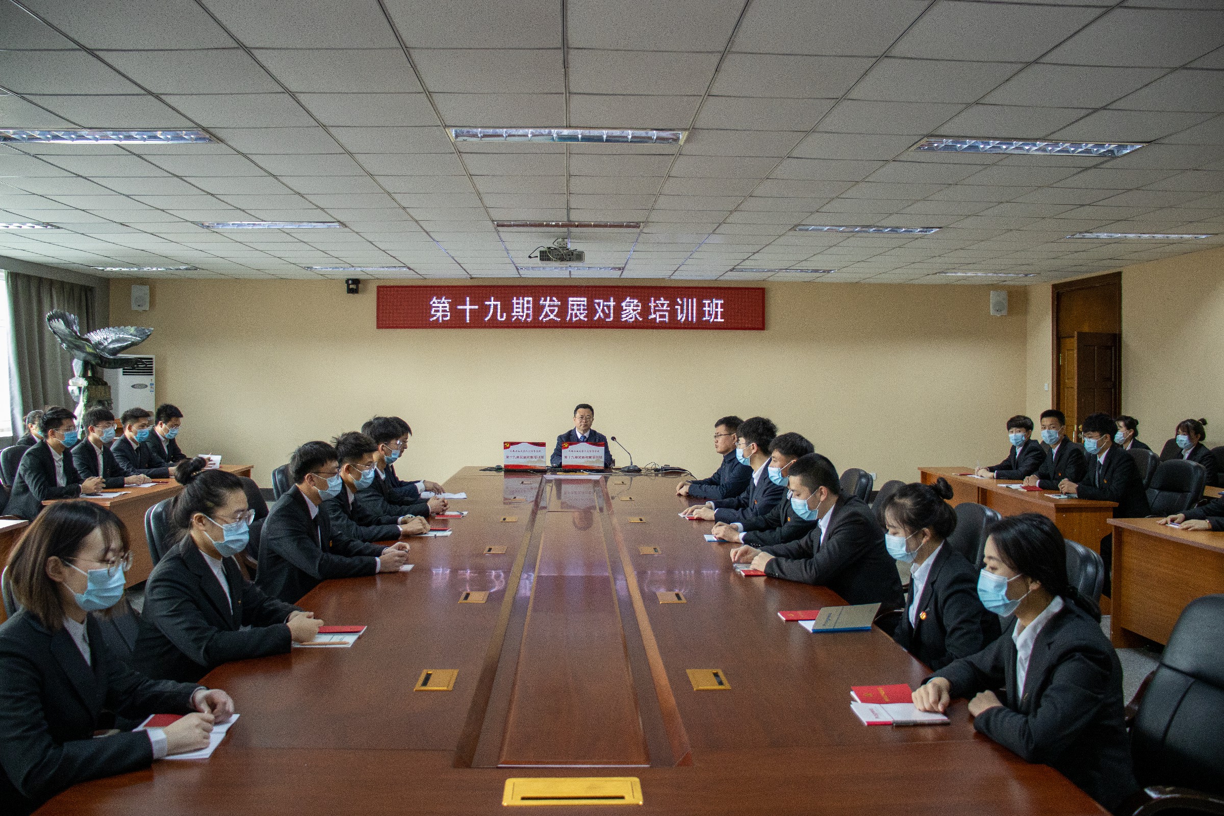 2021年4月17日,学校党校举办了第十九期发展对象培训班开班仪式。学校党委书记、党校校长程军,党委副书记兼学生工作处处长、党校副校长周丹,校长助理、党委组织部兼统战部部长、党校副校长贺同华,党委宣传部兼教师工作部部长王春玲出席开班仪式。开班仪式由组织员办公室副主任、统战部副部长张金良主持。开班仪式采取线上线下结合的形式进行,设置1个主会场和13个分会场。