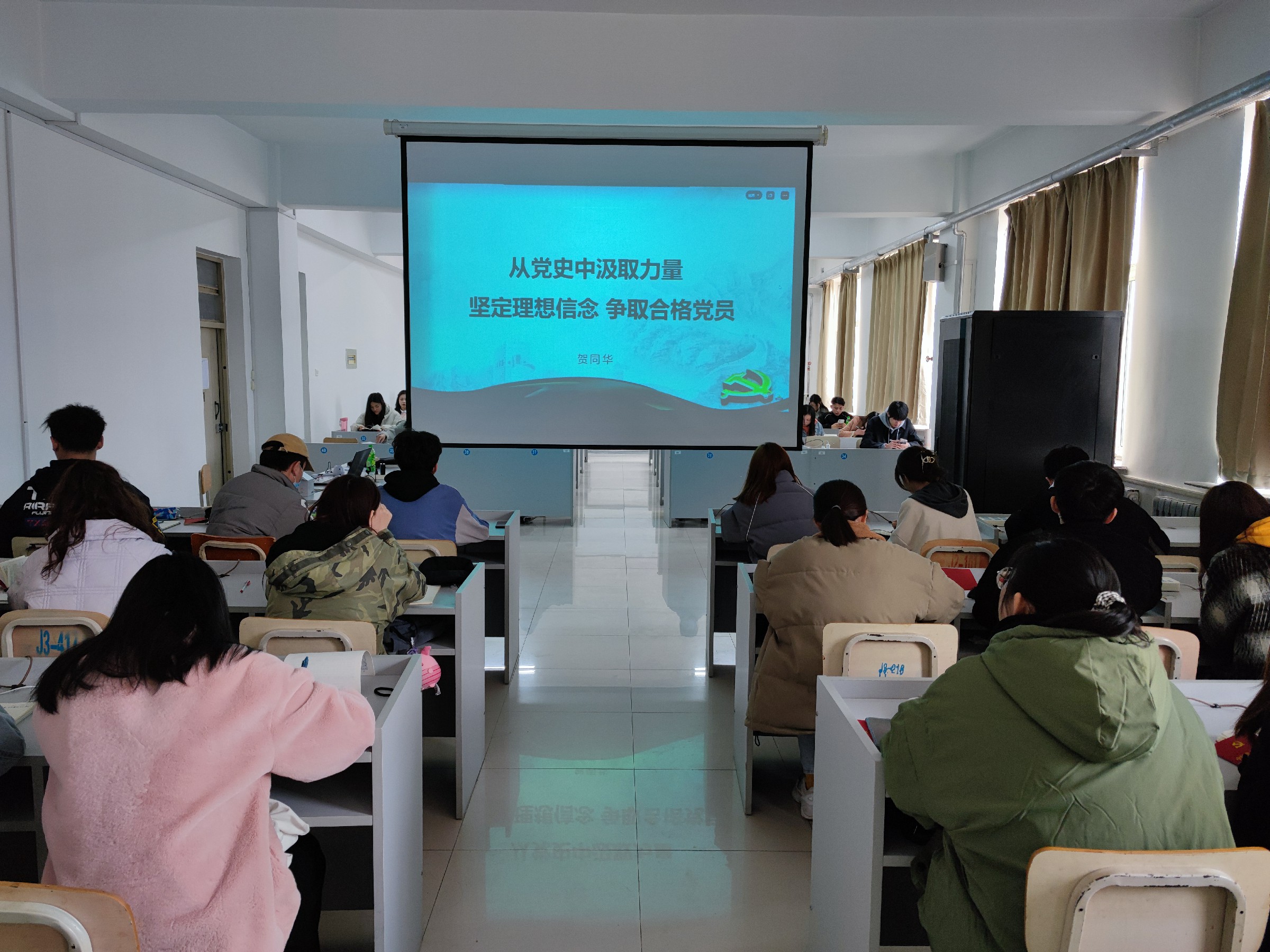 贺同华做了题为《从党史中汲取力量、坚定理想信念、争做合格党员》的专题辅导。