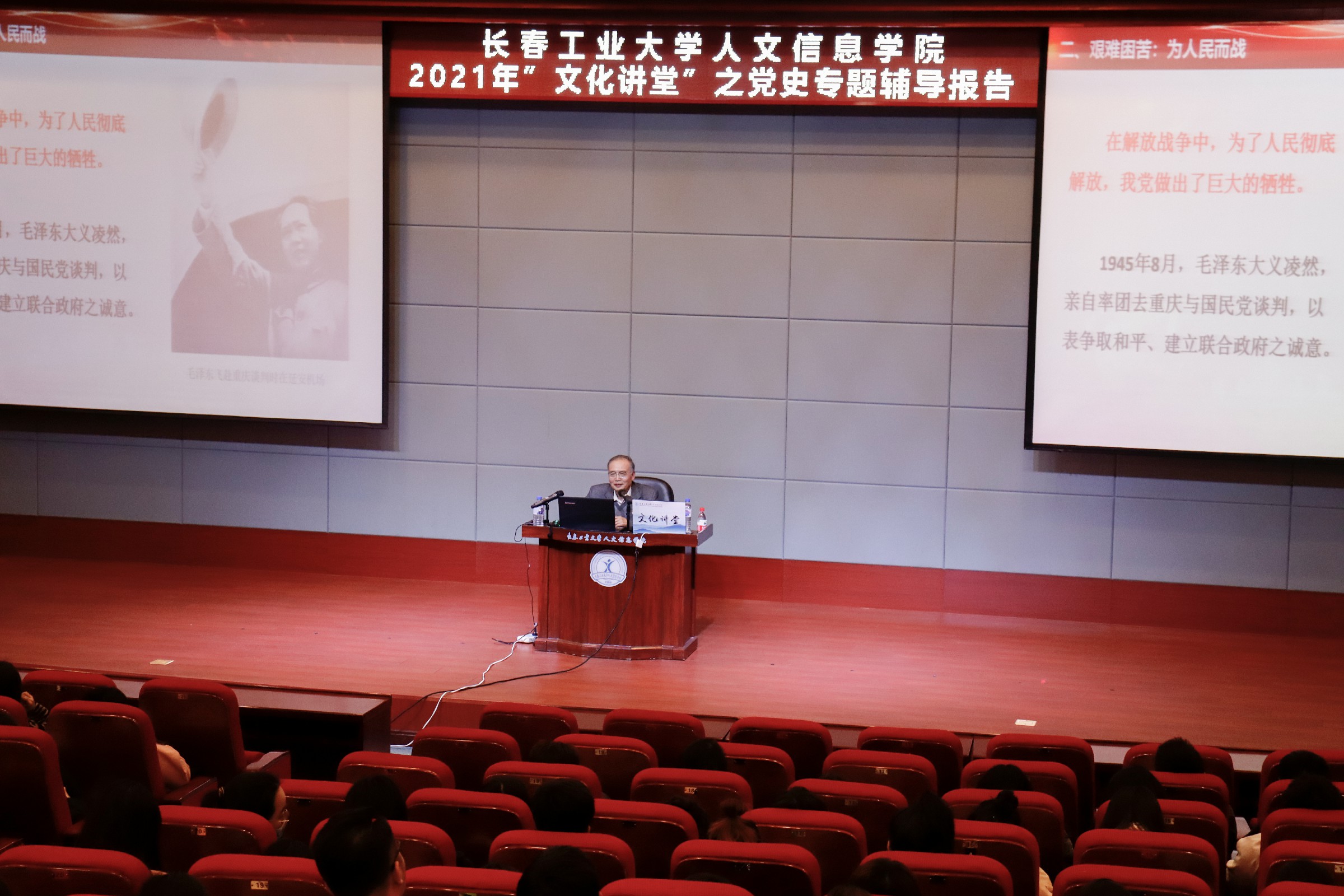 党委宣传部长王春玲表示,学校将以“文化讲堂”为平台,组织校内外专家开展以党史、新中国史、改革开放史、社会主义发展史为主要内容的系列讲座,作为全面深化学校党史学习教育的一项重要内容。希望同学们通过“文化讲堂”,认真学习理解专家教授们的辅导报告,并开展好学习讨论和实践活动,做到学史明理,悟创新理论伟力;做到学史增信,强“两个维护”自觉;做到学史崇德,续红色精神血脉;做到学史力行,为中华复兴奋斗!
