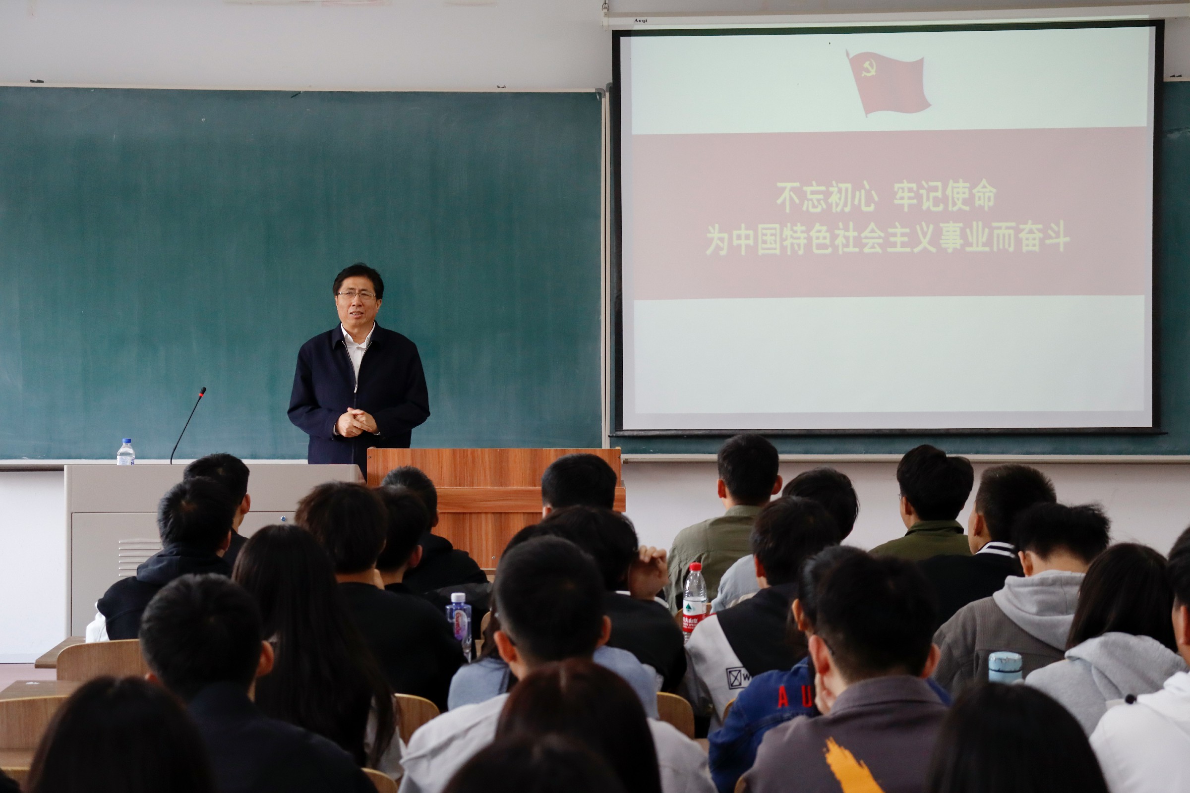 在课程中,潘校长深入浅出,用具体的实例生动形象地讲述了党和国家的发展历程,中国共产党从无到有、从小到大、从弱到强的根本原因就是选择了马克思主义,并能够把马克思主义基本原理与中国具体实际相结合,走出一条既坚持科学社会主义基本原则,又具有鲜明中国特色的革命、建设和改革道路。潘校长鼓励汽车学院的学生们在新时代要有自主创新的精神,刻苦学习严谨求实的态度,为祖国建设添砖加瓦,为民族复兴“铺路架桥”。