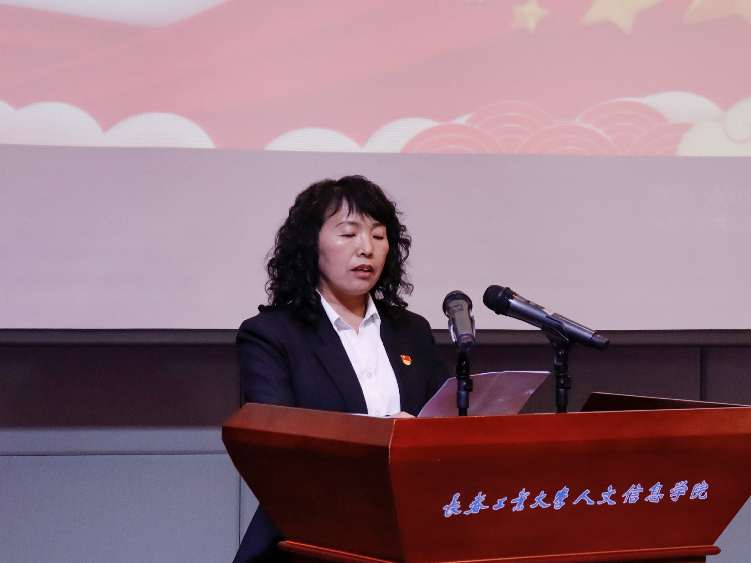 党委委员、宣传部长王春玲,机电工程学院副院长、教师党支部书记王秀玲,商学院副院长、党总支书记李龙,金融学院学生党支部书记、团委书记朱大鹏,马克思主义学院毛泽东思想和中国特色社会主义理论体系概论教研室主任胡艾筠5位同志在会上做了交流发言。