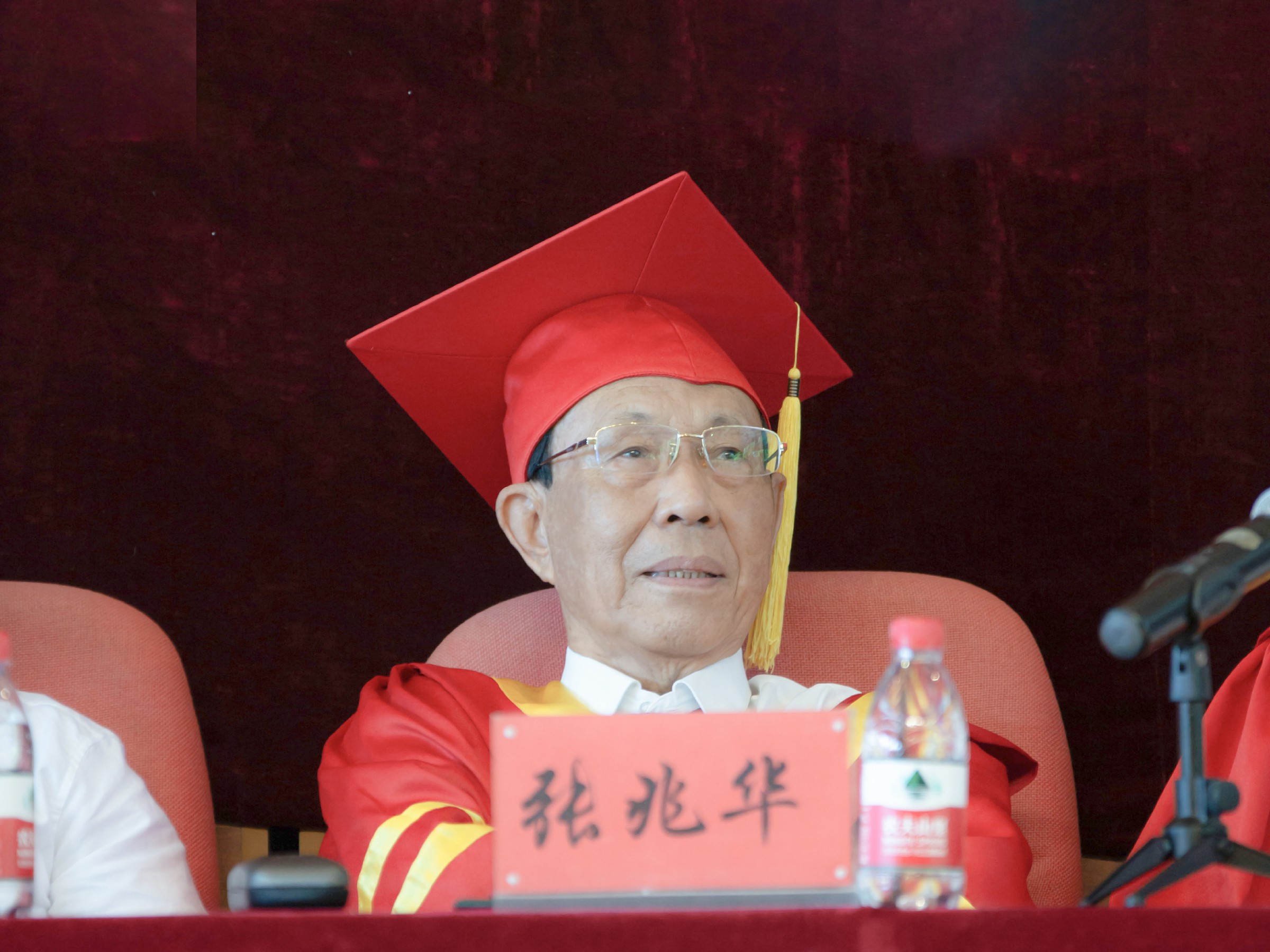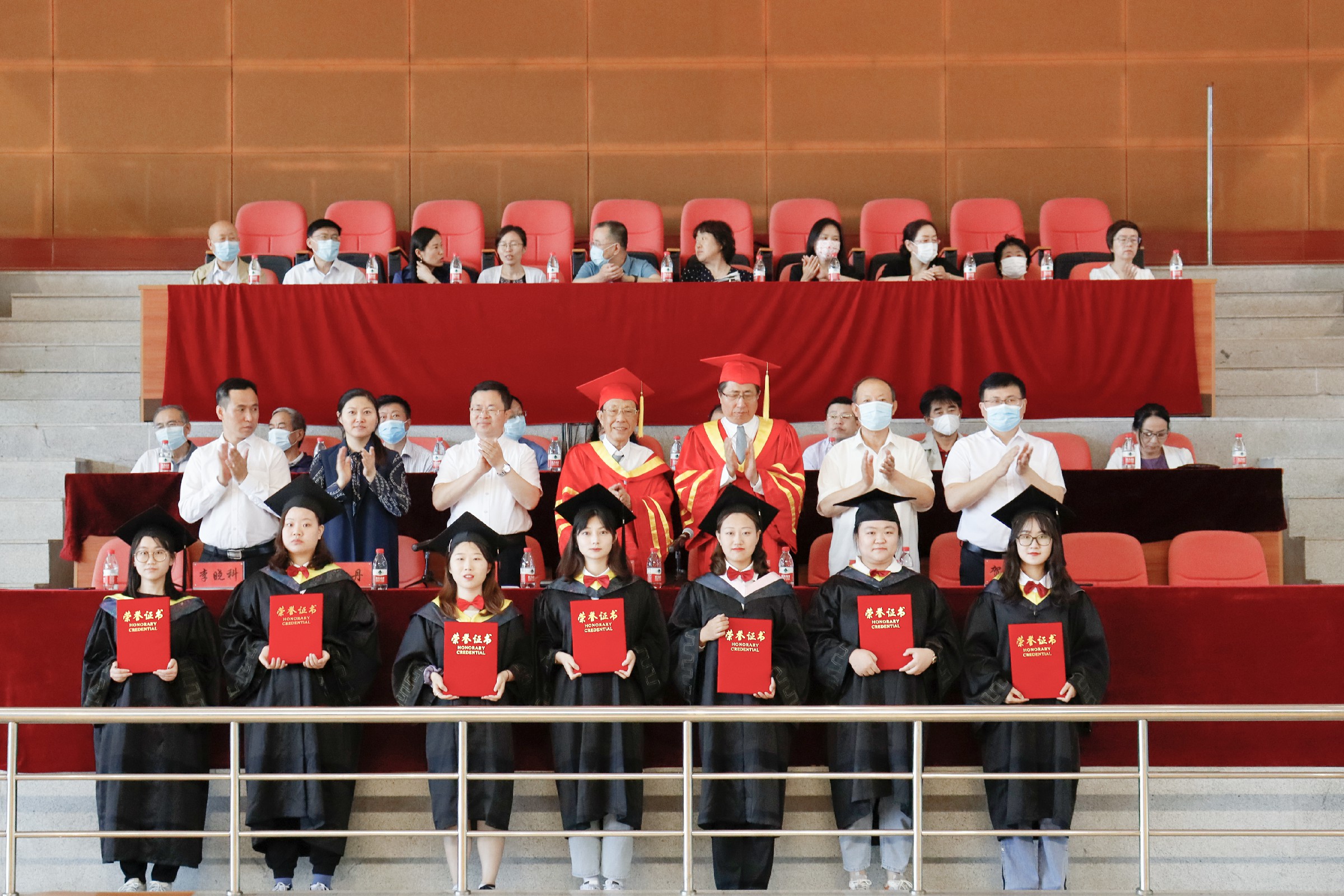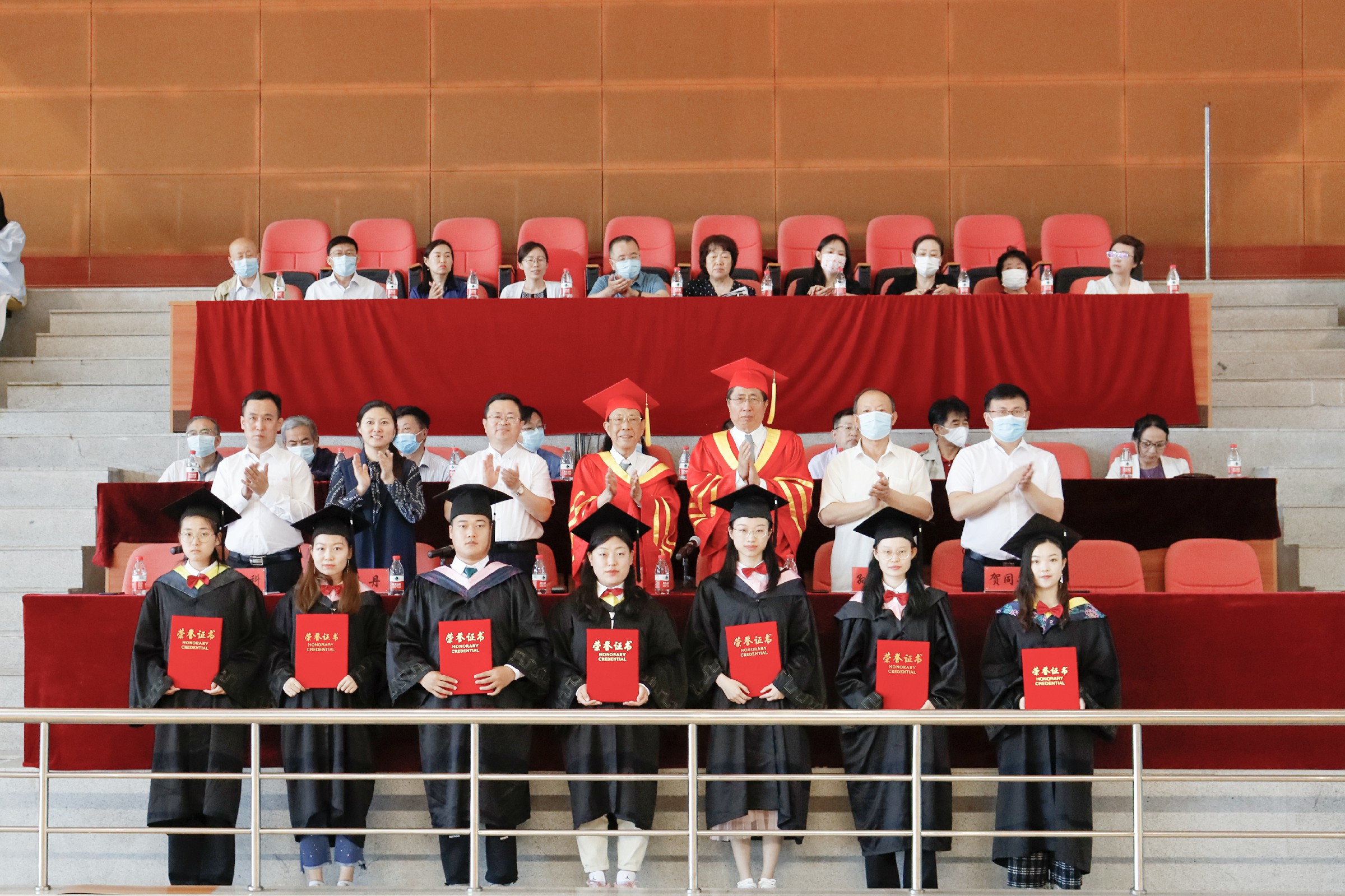董事长张兆华、校长潘福林向毕业生代表拨穗正冠授予学位,并颁发毕业证书、学位证书。校领导为优秀毕业生代表颁奖。