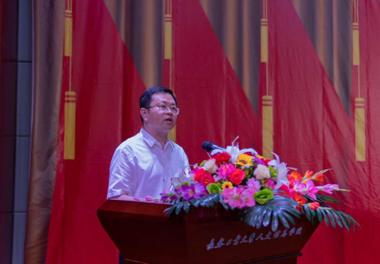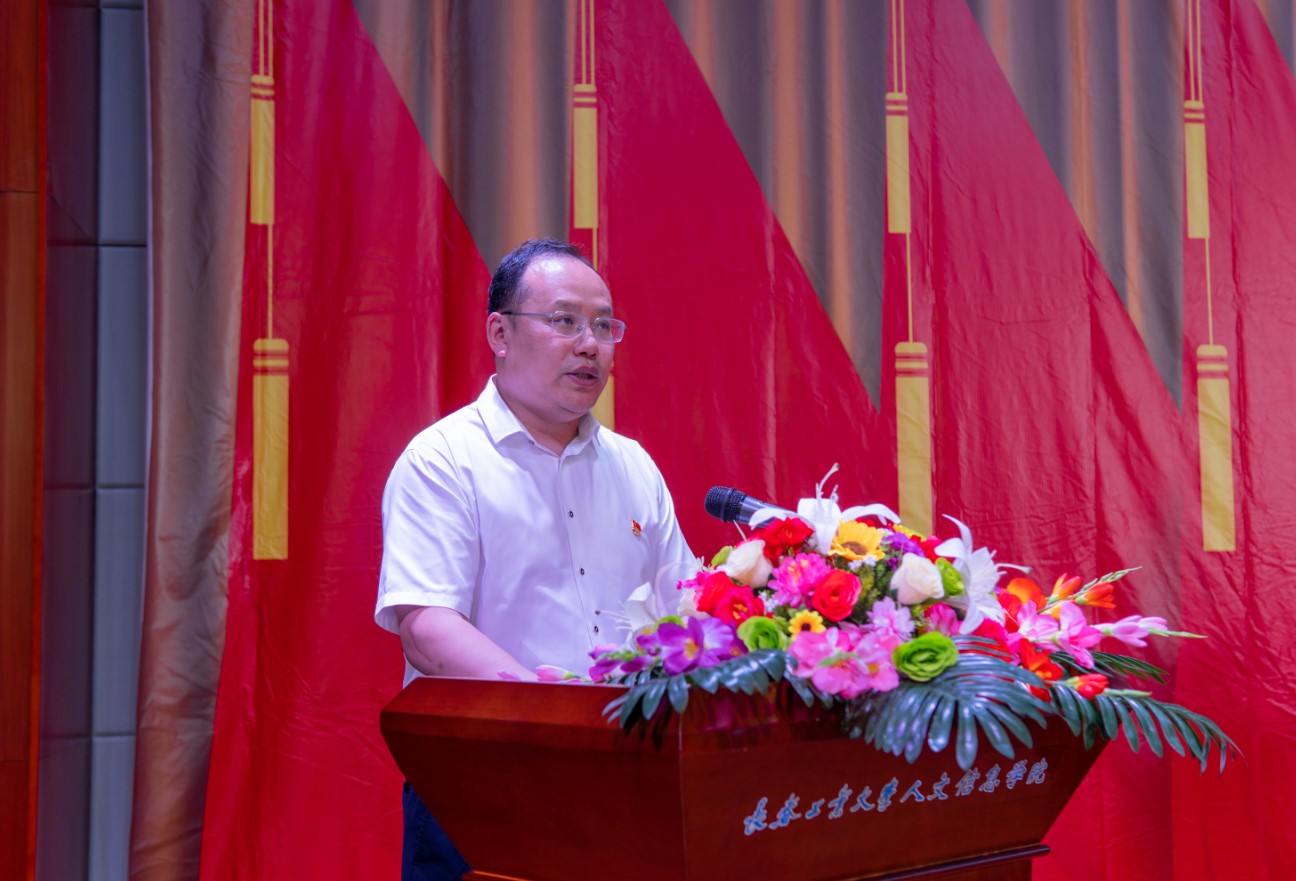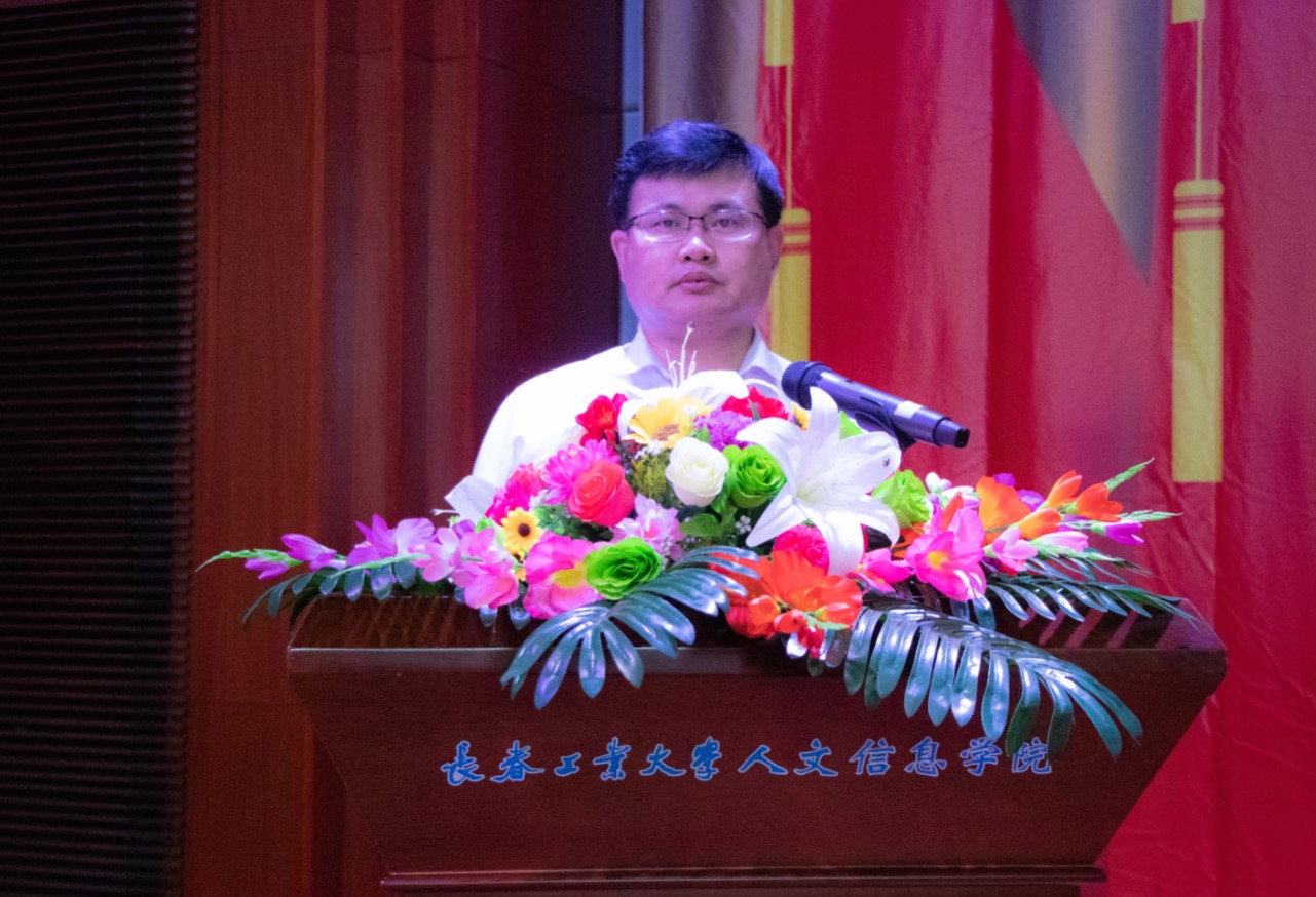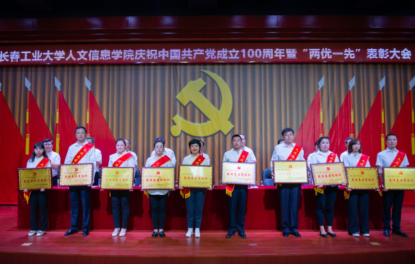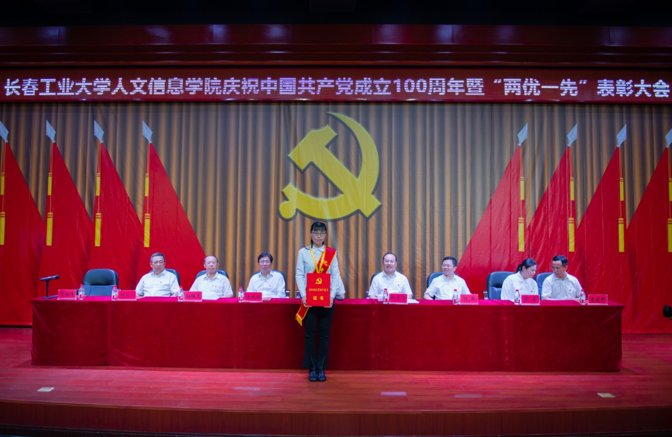 党委副书记周丹宣读我校受到省委和省委教育工委表彰的“两优一先”名单及《中共长春工业大学人文信息学院委员会关于表彰优秀共产党员、优秀党务工作者和先进基层党组织的决定》。