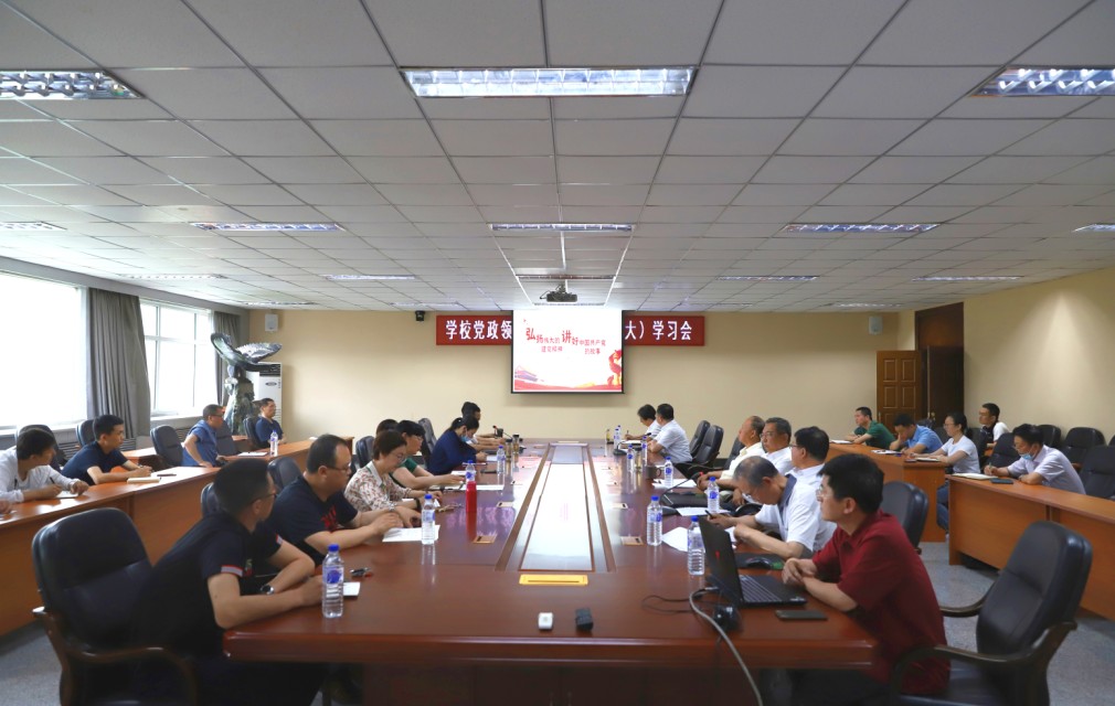 7月7日上午,学校召开党政领导理论中心组(扩大)学习会,专题学习贯彻习近平总书记在庆祝中国共产党成立100周年大会上的重要讲话精神。董事长张兆华,校长潘福林,党委书记程军及学校其他领导班子成员、各党总支(直属支部)书记、党政相关部门负责同志参加会议。