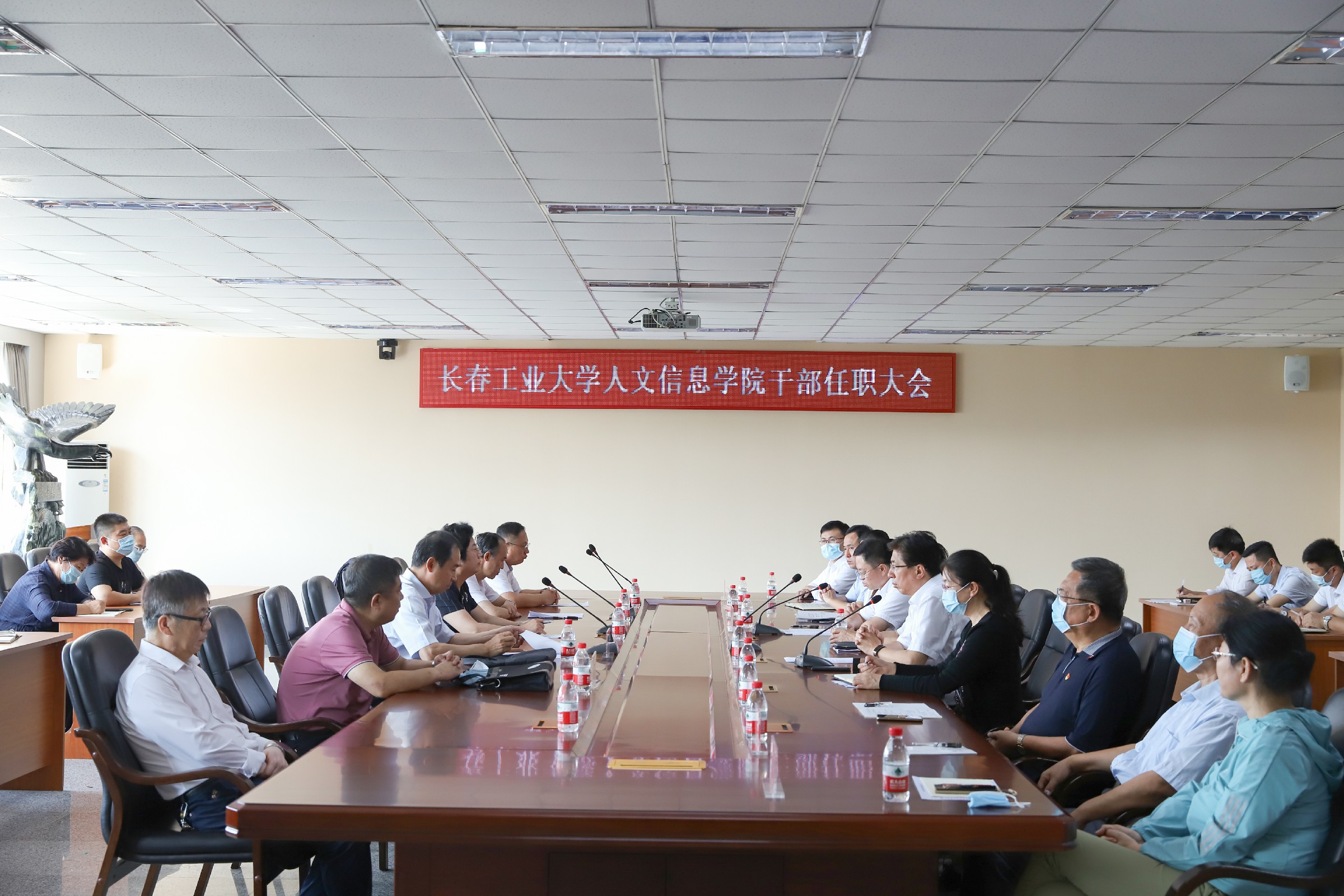 2021年9月1日,长春工业大学人文信息学院党委书记(督导专员)任职大会暨“同在党旗下 携手添光彩”结对共建仪式在校部三楼会议室举行。吉林省教育厅一级巡视员许世彬,省教育厅财务处处长林立华,省委教育工委组织部一级调研员王宏阁,长春理工大学党委书记杨玉新,长春理工大学党委组织部部长谭荣峰,学校创建人、董事长张兆华,校长潘福林,原党委书记(督导专员)程军,新任党委书记(督导专员)王煊,学校领导班子成员,以及各学院、各部门党政负责同志出席大会。会议由校长潘福林主持。