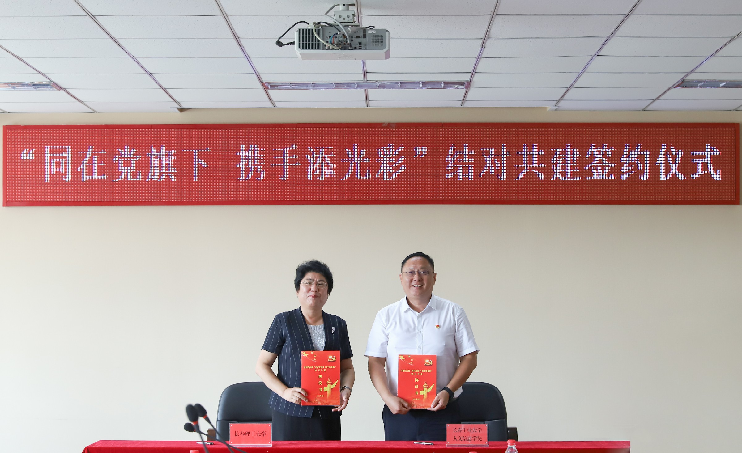 会上,长春理工大学和长春工业大学人文信息学院签订“同在党旗下 携手添光彩”结对共建协议书。