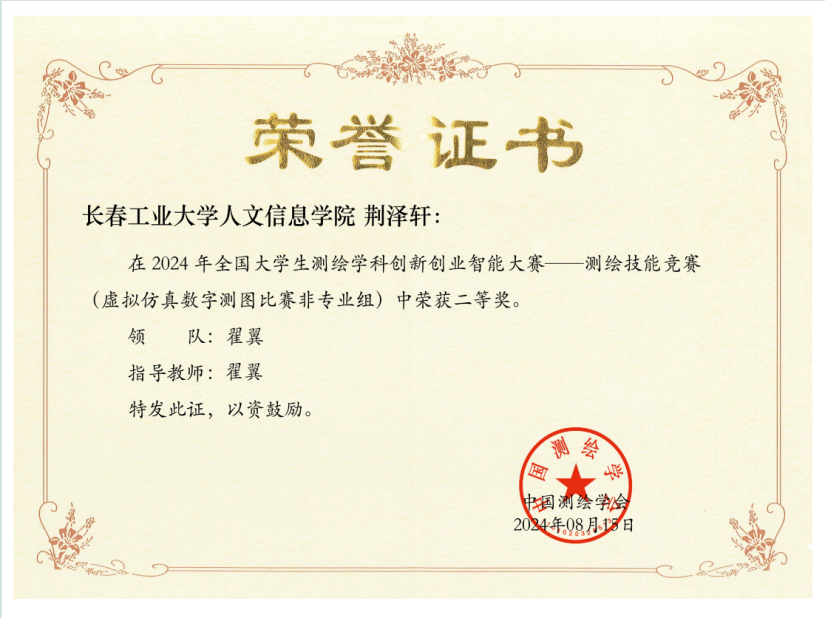 7月31日,教育部高等学校测绘专业教学指导委员会和中国测绘学会教育委员会公布了“2024全国大学生测绘学科创新创业智能大赛”获奖名单,我校建设工程学院师生荣获二等奖两项的优异成绩。