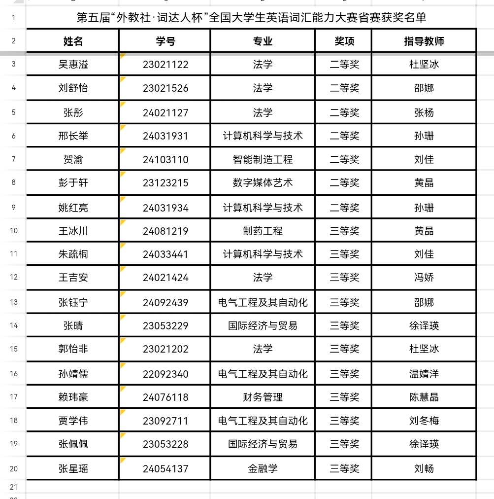 此次竞赛不仅推动英语词汇学习和测试手段的创新,为学生提供一个检验和提高英语词汇能力的竞技平台,也为英语学习注入新的活力,满足学生自主学习需求和四六级考试词汇提升需求,营造了良好的英语学习氛围。竞赛达到了以赛促学、以赛促练的目的,督促学生在平时养成积累、练习和运用英语词汇的好习惯,为日后英语学习打下坚实的基础。同时,此次竞赛也是对线上线下相结合教学模式的深度融合与实践,是外国语学院进一步推动专业英语和大学英语教学改革和探索多元化外语人才培养方式的有效途径。