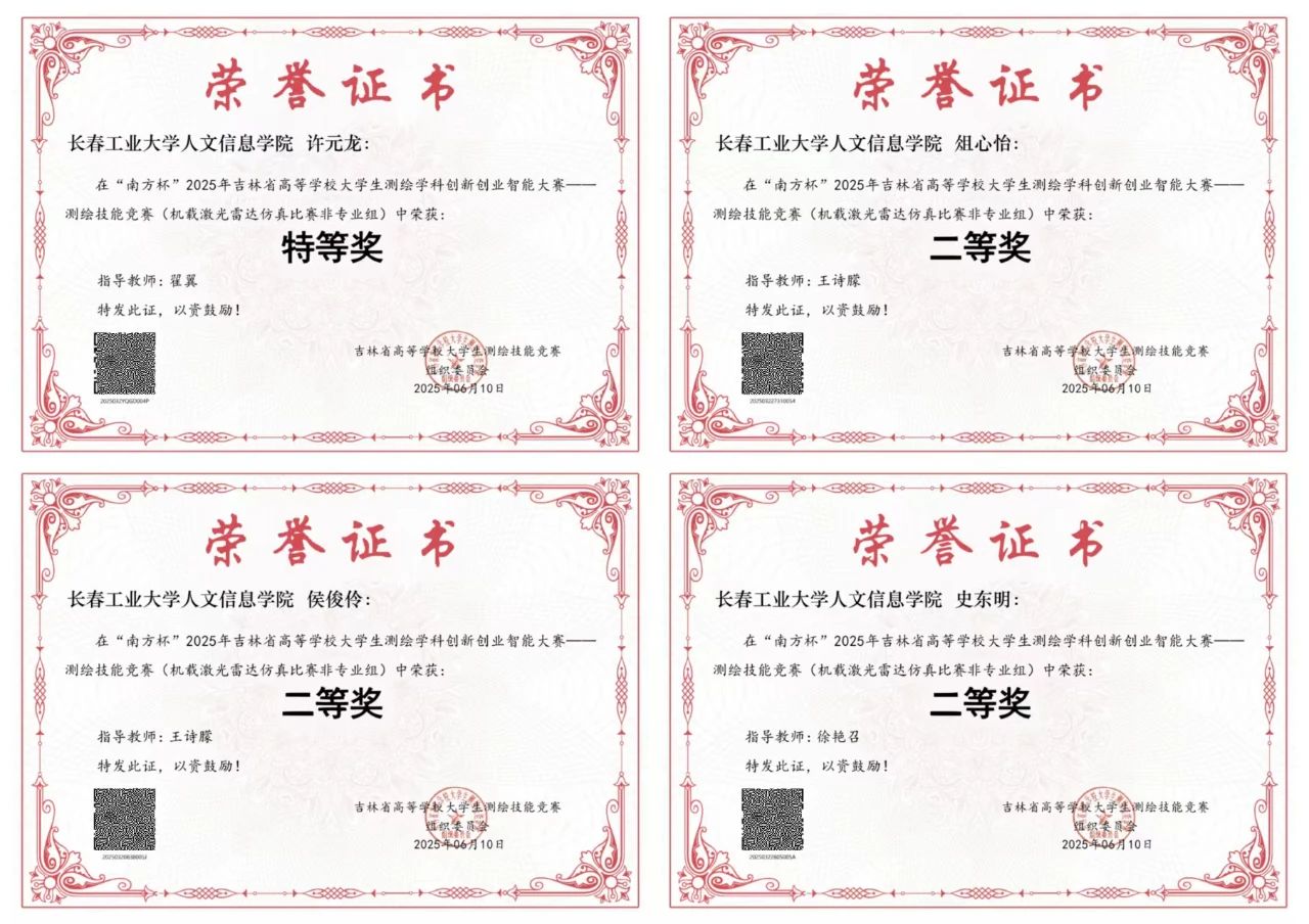 机载激光雷达仿真比赛:荣获特等奖1项、二等奖3项
