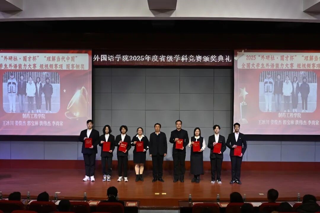 本次大赛以“理解当代中国”为核心主题,聚焦大学生外语综合应用与跨文化传播能力,赛事竞争尤为激烈。制药工程学院参赛团队在张强、陶微微、刘英伟三位指导教师的悉心指导下,紧扣赛事要求反复打磨短视频作品,将专业知识与外语表达深度融合,最终在大赛上脱颖而出。