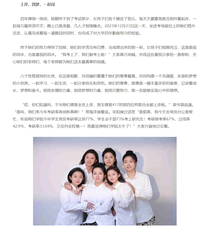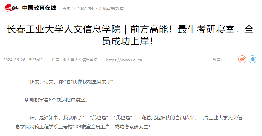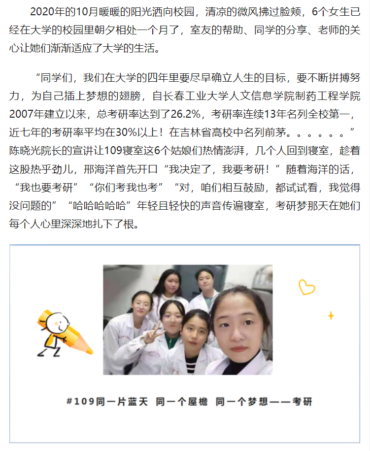 我校制药工程学院五号楼109寝室全员上岸,成功考取研究生! 新浪新闻,中国教育在线等媒体对我校制药工程学院五号楼109寝室全员成功考取研究生进行报道。
