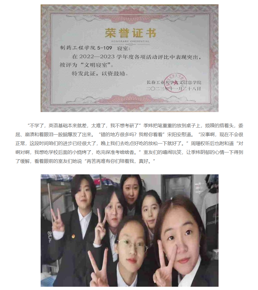 我校制药工程学院五号楼109寝室全员上岸,成功考取研究生!