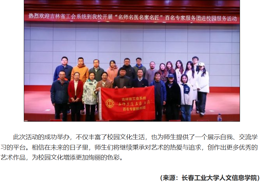11月8日,吉林省工会系统到长春工业大学人文信息学院开展“名师名医名家名匠”百名专家服务团进校园服务活动。