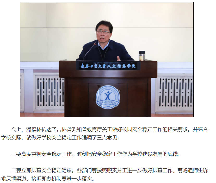 新浪吉林对我校召开安全稳定工作会议进行媒体报道。